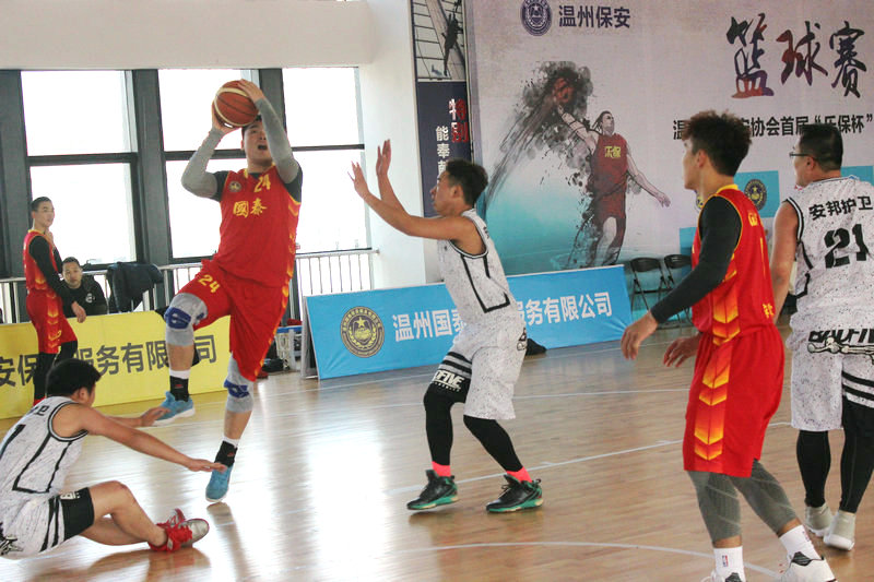由溫州市保安協(xié)會(huì)主辦,樂清保安服務(wù)有限公司承辦的“樂保杯”籃球賽在2017年12月15日早上8點(diǎn)半在樂清特警隊(duì)四樓舉行。當(dāng)天上午10點(diǎn)多我們國泰保安服務(wù)有限公司的籃球隊(duì)以76:44贏了溫州中安保安公司籃球隊(duì)。15日晚上八點(diǎn)10分,國泰隊(duì)對(duì)陣樂保隊(duì),我們國泰隊(duì)以91:73贏了樂清保安公司籃球隊(duì),16日早上,國泰隊(duì)又以68:33贏了溫州保安總公司,17日上午國泰隊(duì)以57比38國泰隊(duì)?wèi)?zhàn)勝了安邦護(hù)衛(wèi)籃球隊(duì),贏得了小組賽中的每一場(chǎng)球賽,最終以小組第一名出線,決戰(zhàn)19日晚上的冠亞軍賽。